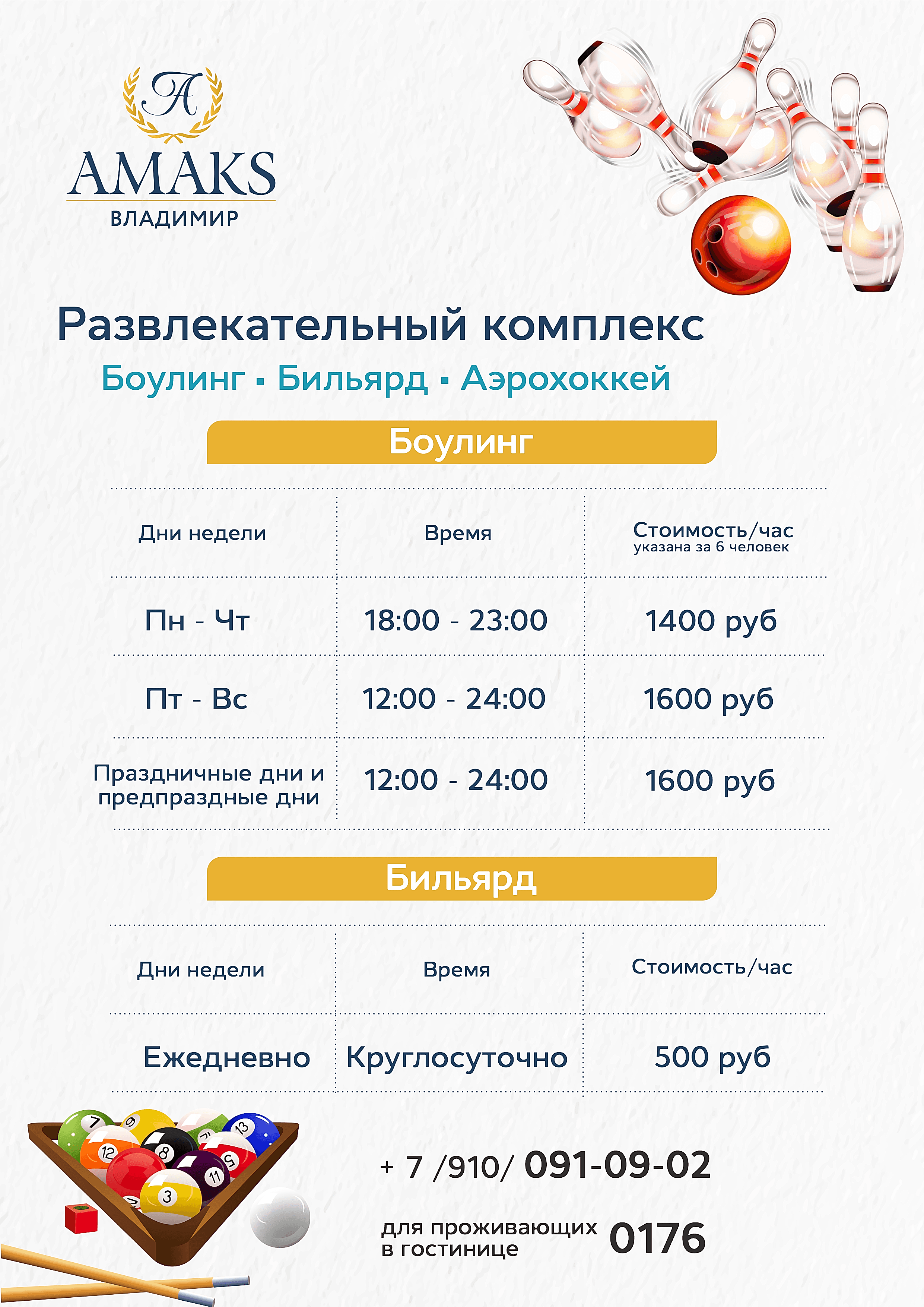 Приглашаем гостей гостиницы, а также жителей города весело и увлекательно провести время в кругу семьи или друзей в боулинге развлекательного Пин-ап АМАКС "Золотое кольцо".